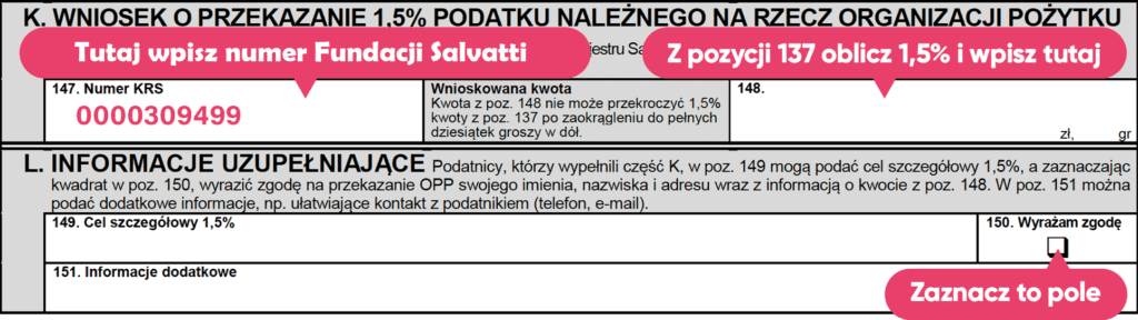 - przekazując 1.5% podatku: